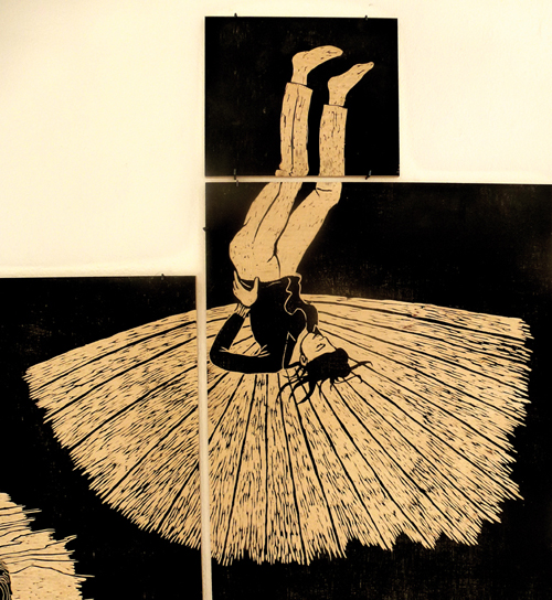 sie zeigt ein holzschnittensemble